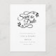 Det här enkla skriptet svartvitt sparar datumkortet med ett vackert skript som sparar datumet med ett motiv för söt löv ovanför dina detaljer som är angivna i elegant text.
