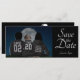 Spara datum för hundpar. Få kreativ och anpassa Spara datum med ett foto av din hund.