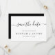 Minimalistiskt svartvitt och vitt Elegant bröllop sparar datumet. Anpassa skripttypografi med dina detaljer.