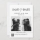 Det här redigerbara sparandet av datummallen är ett modernt meddelande om svartvita foton från bröllop med minimalistisk typografi, perfekt för par tittar för en snyggt och enkel att anpassa design.