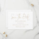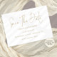 Minimalistiskt Guld Script Bröllop spara datum. Tillgänglig digitalt eller utskriven. Enkel elegans med Spara datumet i ett modernt skript.Resten av texten kan du enkelt anpassa. Här i guld på vitt visas hur text och färg i bakgrunden kan ändras om du vill med hjälp av alternativet Anpassa ytterligare.