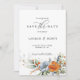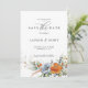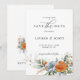 Den här förbluffande Spara datumet har ett vackert motiv för blommigten i blått och orange, som skapar en perfekt harmoni mellan färg som imponerar på dina gäster. Detta gör det till ett utmärkt val för par som vill lägga lite färg till att spara datumet och göra det verkligt unikt.