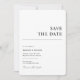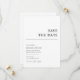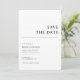 Börja resan bröllop med vårt enkla Chic Spara datum meddelande-kort. Med en modern elegans luft slår dessa kort ihop tidlös stil med en minimalistisk utformning, perfekt för att tillkännage din speciella dag. De är konstruerade med ett rent, sans-serif-teckensnitt och en skarp kontrast av svart på vitt, och de anger scenen för ett minnesvärt firande. Vår sparat datumet antydan om sofistikering är perfekt för paret som söker både stil och enkelhet och kommer att fånga era gästers hjärtan och ange en förfinad ton för dina kommande nybörjare.