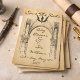 Ta ett steg tillbaka i tiden till en era av ridderskap och romantik med vårt medeltida renässans falska pergament Spara datum bröllops korts anmälan. Utformat med utsökt detaljrikedom fångar detta kort essensen av en svunnen era, med rikt, åldrat (falskt) pergament prytt med svarta accenter: en båge med dekorationer.