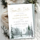 Spara datuminbjudan WINTER Gräs-skogen med minimal inbjudan att spara blått. Eleganten sparar datumkortet med vackra handmålade vinterlandskapsplatser i skifferblått och grått-grönt med kalligrafiskript för elegant. Modern minimalistisk perfekt av bröllop spara datum-kort för höstbröllop och vinterbröllop. Du kan anpassa ordalydelsen, teckensnittet stil, färg och storlekt framför och bakom kortet. Kontakta mig gärna om du vill ha matchande artiklar.
