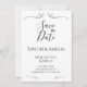 Detta är en enkel, modern inbjudan från bröllop spara datum. Den är i minsta möjliga svartvitt med elegantens skripttypografi. På framsidan står det "Spara datum", med utrymme för namn, datum, plats och utrymme för mer information i bröllop. På baksidan står det också "Spara datumet", tillsammans med namn och bröllop datum. Texten ramas av elegantens hjärtsnurrningar. Den här snyggten är en perfekt för att informera dina vänner och familj om ditt bröllop-datum innan de skickar sin formella bröllopsinbjudan till dem. Om du vill anpassa texten skriver du in informationen i rutan Anpassa. Här kan du också ändra resten av texten om du vill. Om du vill ändra färg eller teckensnitt checkar du ut verktyg för designredigering. Om du behöver hjälp med att anpassa, matcha produkter eller om du vill ha hjälp med anpassad design kontaktar du mig via zazzle-chatta eller e-post: ursuladawnmoon@gmail.com