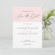 Elegant modern typografi Spara datum i svart med minimalistisk rosa och vit bakgrund.