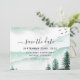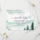 Rustic Forest Watercolor Moody Grönt Bröllop spara datum Card på vit bakgrund - innehåller vacker manustypografi och elegant med Birds, Träd och Mountains och Grey för den speciella Bröllopsdagen firande.