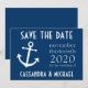 Boat Anchor Save the Date (Mörk blått)...Den här roligten, nautical spara datum meddelande är perfekten för att låta vänner och familj veta att spara datumet för ditt kommande bröllop. Perfekt sparat datumet för ett nautiskt temat bröllop, ett bröllop på en båt/yacht eller ett tropiskt destinationsbröllop. Besök WindyCityStationery.com för hela raden "Boat Anchor" som sparar datumen i ett stort urval av färg och som matchar "Boat Anchor"-porten frimärke, inbjudningar, tackkort, etiketter, klistermärken med mera.