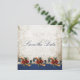 Elegant skandinavisk Spara datum-anmälan på Floral Sepia-bakgrund med traditionell norsk Telemark-rosemålning i guld-, grön- och rödt toner på blå. Anpassa denna unika och klassiska inbjudan genom att skriva in dina egna detaljer på baksidan. Perfekt för att behålla i din minnesskrapbok också!