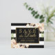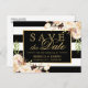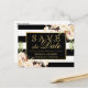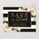 Spara datum - Elegant Klassisk Svart Vit Ränder Nyanser av Elfenbensfärgade Blommor med Guld Ram Mall - En Perfekt Design för din Stora Dag.