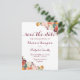 Skicka vår fallande blommigt och spara datumvykorten med orange, burgundi, kräm och rosa blommor för att informera dina gäster om att spärra av bröllop-datumet. Ordalydelsen är helt anpassade - om du behöver ändra teckensnittet, teckensnittet färg, storleka eller placeringen av textrutorna klickar du bara på knappen "Klicka för att anpassa ytterligare" för att ändra saken. Se till att kontrollera vårt stora urval av samordnande element genom att bläddra i samlingen Fall Flower Bröllop!