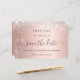 Ett giftigt och trendig Spara datumkortet för en 40:e (eller någon annan ålder) födelsedagsfest. En feminin rosa, ro guld faux metallisk tittar bakgrund som dekoreras med faux silver glitter damm. Anpassa och lägg till datum och namn/ålder 40. Texten: Spara datumet skrivs med ett stort trendig-handskript i stil.