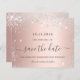 Ett giftigt och trendig Spara datumkortet för en 40:e (eller någon annan ålder) födelsedagsfest. En feminin rosa, ro guld faux metallisk tittar bakgrund som dekoreras med faux silver glitter damm. Anpassa och lägg till datum och namn/ålder 40. Texten: Spara datumet skrivs med ett stort trendig-handskript i stil.