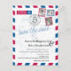 Ett roligt kreativ Bröllop spara datum att skicka till alla gäster och meddela ditt målbröllop. Den stressade utformningen av flygposten i rött och blått med karta i Förenade Stater. Två hjärtan på platsen för ISLE OF MAN och ITALIEN som förbinder dem. Lägg till tre av dina favoritfoton för frimärket. Om du har en annan plats ska du tala om det för mig och jag konfigurerar en för den platsen. E-post paula@labellarue.com