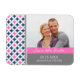 Spara datummagneterna bröllop i elegant och den moderna mörkens marinblå, ljusa fuchsiska shock rosa, grått och vita reflektorer och avslappnader och diamanter med fetstilt geometriskt mönster. Fullständigt anpassade med namn-, foto- och bröllop-datum, som finns i ett stort antal matchande bröllop-produkter. Kontakta oss om du vill ha en anpassningsbar färg eller design.