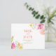 Meddela att ni ska gifta er med det här blommiga bröllopskortet "Save the date". Det har en blandning av klassisk och handskriven typografi i orange över en krispigt vit bakgrund. En ram av unik akvarell blomkonst inramar era detaljer i nyanser av rosa, persika, orange och lila. Använd mallfälten för att anpassa med er egen information. För att se den matchande bröllopspresentationssatsen och fler idéer besök Do Tell A Belle på Zazzle marknadsplats.