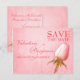 Vacker enkel rosa ros på rosa modern rustic effekt papper spara datum bröllop informell inbjudan. Redigera denna inbjudan med dina egna ord (lämplig för längre namn). Enkel men modern och romantisk inbjudan. Design och fotografering av Sarah Trett.