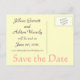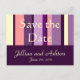 Spara datum postkort Rosa lila mönster. Anpassa med dina namn och datum på framsidan. Ändra texten på baksidan för att passa dina behov och den etikett du vill följa. Designen på framsidan av kortet är skapad av Elke Clarke och är upphovsrättsskyddad och dess användning är exklusiv för Custom Weddings på Zazzle.com.