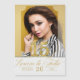 Ett spanskt språk Spara det datum som översätts på spanska till Reserva la Fecha. Enkel och elegant med gyllene accenter på benvita, bilden av flickan som slår 15 och datumet för hennes Quinceanera firande.