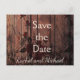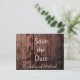 Spara datumet för din bröllamsceremoni med detta vackra röda spets- och träpostkort. Med en illustration av en röd spets och träbakgrund, lägg din beställning idag!