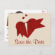 Spara datum Röda kärleksfåglar Bröllopsfoto vykort