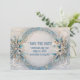 En Art Deco-inspirerad Spara datum krans med fantastiska nyanser av turkos. Anpassa texten med dina detaljer - ett underbart sätt att bjuda in familj och vänner att spara datum.