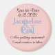 Bröllop Spara datum med vacker rosa pastellbakgrund och svart text händelse detaljer. Brud och brudgum namn i ljusblått. Klicka för att anpassa och redigera bakgrund eller textfärger hex-koder, eller typsnittsstil. Design av TamiraZDesigns.