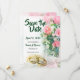 Det här Spara datum meddelande-kortet har ett vackert vattenfärgsformat bildtecken på en rosa bukett med band guld bröllop över en pärlsträng. Det finns också en fotoversion av det här kortet stil i min butik, och det finns även en matchande frimärke med den här vattenfärgsformaterade designen.