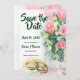 Spara datum Rosa ros med Guld Bröllop-band Spara Datumet