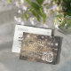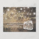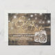 Postkortsmallar i Bröllop spara datum - Elegant Faux guldfyllning sparar datumskript och Vintage Mason Burk String Ljus på Rustic Wood Background.