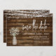 Rustika ljustryckor för gårdshus och babysand i en burk Spara datum Bröllopsinbjudningar på trähuvud - inkluderar vacker och elegant skript typografi med modern Country Farm House Glitter för den speciella bröllopsfirandet.