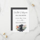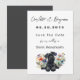 Spara datum bröllopsinbjudan med Schnauzer hund design. En svart hund ligger bland vilda blommor längst ner på vitt papper. All text är svart och mörkgrå och baksidan av kortet är enfärgat grått. Gör enkelt ändringar i typsnitt och färger med hjälp av designverktyget. Denna mindre storlek kan också konverteras till storleken 5x7. Välj också att dela dina inbjudningar online med hjälp av alternativet för direkt nedladdning.
