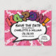 Anpassa med dina namn och detaljer för att tillkännage datumet för ditt speciella evenemang. Serietidning pop art-tema modern, rolig retrodesign, perfekt för bröllop, brud shower, baby shower, dop, förlovningsfester, årsdagar, examen, födelsedagsfirande och andra speciella evenemang under året! En cool, trendig och rolig design som sätter BAM-ZAP-POW i din dag. Designad av Thisisnotme©