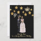 Spara datum enkel kort för ett Halloween-bröllop. Designen är ett svart kort med en skelettbrud och -brudgum, stjärnor och spöken. Tack till Pixabay och Creative Fabrica för några av elementen i designen. Orden på baksidan av kortet kan ändras.