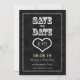 Denna roliga vintageinspirerade tavla för "save the date"-inbjudan har en prickig ram med orden "SAVE the DATE" skrivna i ett vintageinspirerat typsnitt. Ett hjärta visas under orden "SAVE the DATE", som ser ut att vara ritad med krita. Inuti hjärtat kan du anpassa designen med din monogram eller initialer, där hennes visas i rosa och hans i blått. Under hjärtat står datumet för det speciella tillfället i gult och detaljerna, inklusive era namn och var ni ska gifta er, med orden "formell inbjudan följer" längst ner i gult. En fantastisk vintageinspirerad "save the date"-inbjudan i tavla-stil. Copyright henishouseofpaper