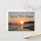 Spara detta datum postkort med en avlägsen, privat strand och solnedgång.