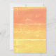 Spara datumet! Sommarens Rustic Avslappnad Gult Peach Lycklig Mellow Mönster Spara datumkorten. Ensidig. Berätta för alla att du är redo att fira din avslappnad sommarens ungdom, förnyelse av löften, årsdag eller andra tillfälle med den här Lycklig-gult gulten och den rosiga avslappnaden mönster. Denna utformning fungerar för alla åldrar och gender och är underbar för vår och sommar, men kan användas hela året. Lycklig Mellow färg är en gult med en rosenspetsig orange som är mer livskraftig och fullt än persikofuzz-trenden. Bakgrunden till mönster skapades från ett originalfoto som togs av skaparen, av ett solnedgång i San Diego i Kalifornien, och sedan digitalt texturerat till ge, som nästan målade ett något bedrövligt utseende. Konstruktionsbeskrivning: Bakgrunden mönster består av fyra delar. Den översta delen är en rosenpersika färg, den andra delen går från färg till en medelstor gult och de två grund-sektionerna är av medelstor gult. Avsnitten är uppdelade efter grovt linjer som är lättare än det huvudsakliga färg. Hela mönstret har fläckar som gör att det ser illa ut, som om färg användes oförsiktigt och ofullständigt. Samma underliggande färg mönster på båda sidor. Textbeskrivning: Textmallen "Spara datumet för bröllop av" i textskriptteckensnittet över den rosa persiennsektionen överst på avslappnaden. Under det datumet, med fet stil, under mallarna för namn för de två människorna gifta sig, och den stad där bröllop kommer att hållas, eller så kan du lämna det tomt. Samma bakgrund ligger mönster på baksidan, men utan text. Du kan anpassa med ytterligare text, ta ut bakgrunden mönster eller på annat sätt anpassa den med knappen Anpassa.