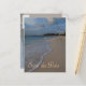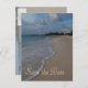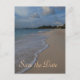 Bröllopssparande datum strand bröllop anmälan, med en vacker och romantisk strandfoto. Blå himmel, turkos vatten, solsken skapar en elegant design. Brudar och brudgummar kan använda detta attraktiva bröllopskort ensamt eller koordinera det med matchande frimärken och bröllopsinbjudningar.