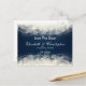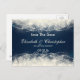 Spara datum-kort som du kan anpassa med brudens och brudgummens namn och deras bröllopsdatum. En elegant abstrakt design med krämfärgad spets och pärlor gjorda av cirklar och bubblor. Bakgrunden är mörkblå med urblekta rutor åt sidan. Vacker och delikat design.