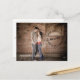 Liksom ett poststämpel på ett kuvert har denna design utseendet av ett frimärke på framsidan med en cirkel av ord som anger "spara datum - vi gifter oss". Personligad med datum för ert bröllop och era namn med ett foto i full storlek som visar det roliga paret. Ett bra alternativ till traditionella eller formella spara-datum-kort, denna design är trendig, ung och avslappnad och har gott om utrymme på baksidan att anpassa med din personliga information.