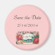 Ett Spara datum magneter med vacker vintage Viktoriansk konst av ett par elegant vit svanar flytande på en sjö som är inramad av röd ros och rosa glöm-mig-inte blommor. Klicka på Anpassa om du vill ändra typsnitt när du vill lägga till text med mera.