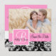 Rosa, Svart och Vit Damaskus Mönster Spara Datum med Monogram, Initial och Namn Platt Kort med ert förlovningsfoto på framsidan och er text på baksidan. Helt Anpassningsbar Mall. ELke Clarke©