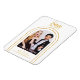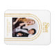 Spara Snyggten Date Black Guld Script Modern Bröllop Magnets innehåller ditt favoritfoto i en gyllene båge på en vit bakgrund. Anpassa texten genom att redigera texten i de angivna textrutorna. Designad för dig ©Evco Studio www.zazzle.com/store/evcostudio