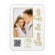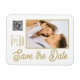 Spara Snyggten Date Black Guld Script Modern Bröllop Magnets har en svart bakgrund med anpassningsbarnas foto. Anpassa texten genom att redigera texten i de angivna textrutorna och lägga till webbadressen för anpassningsbarna QR-kod. Designad för dig ©Evco Studio www.zazzle.com/store/evcostudio