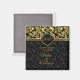 Förvrängningsmönster för svarta och guld blommigt och guld rand med monogram - spara datumet. Anpassade magnet-mall
