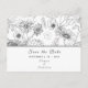 En enkel "Spara datumet"-inbjudan från elegant bröllop med modern konst. Hand plockade svart och vit blomma mönster om daisy och ro och ferns. Anpassa texten och ta bort det du inte behöver.