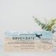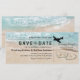 Nydas av romantiken med soldränkta sandstränder och lugnande havsvågor med vår unika "Save-the-date"-boardingkort för resmål vid havet. Utformat med stor omsorg med en tropisk ö-miljö som bakgrund, har kortet en vintage strandscen med två älskande hjärtan vid strandkanten, elegant prydd med era initialer. Textmallen för bröllop infogar en personlig touch på er stora dag och inbjuder gästerna att ge sig ut på en oförglömlig resa av kärlek och firande.