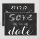 Ett "Spara datum"-kort på en svart bakgrund för de människor som gillar lite kant och lite nostalgi tillsammans. Enkelt och sakligt. Perfekt för läraren gifter sig.