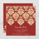 Spara datum vigsel inbjudan kort rött damaskus